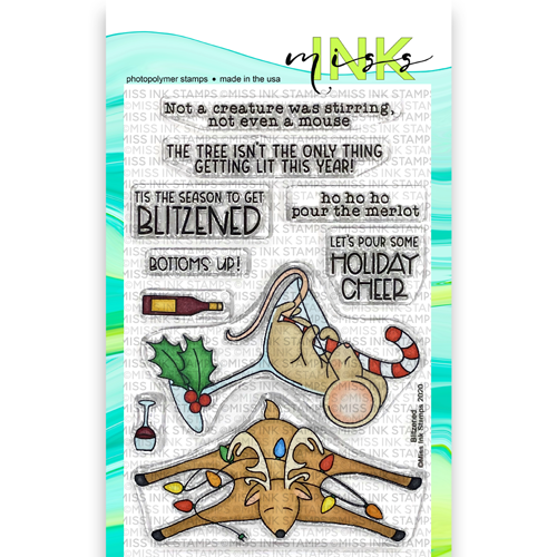 Blitzened is a fun 4x6" set of holiday drinking phrases and images.