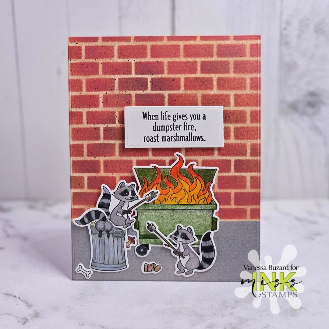 This stamp has a Dumpster Fire Coordinating Die Set.