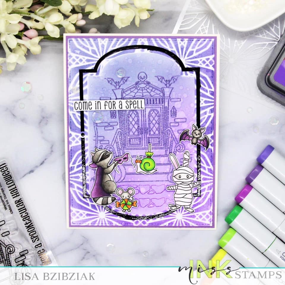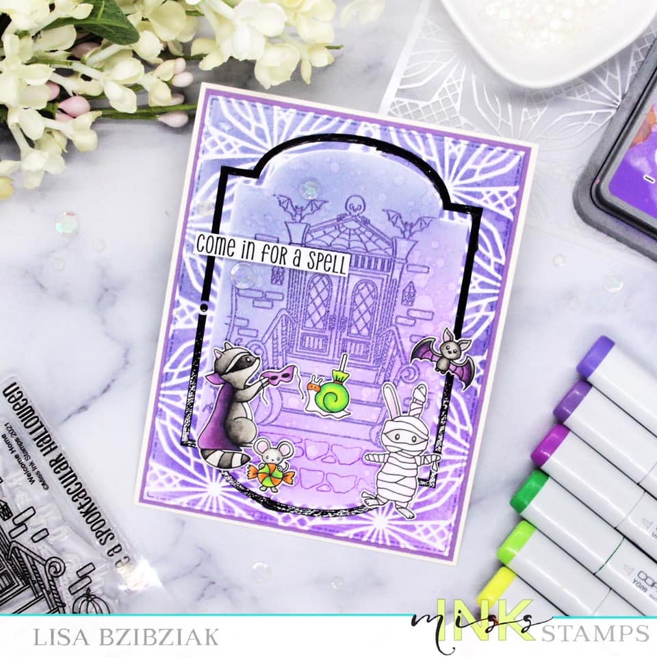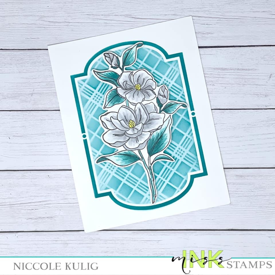This set is a great addition to your cardmaking. It lets you ink blend a background and add a frame with ink, glitter or paste to help it pop. It includes the stencil, mask and frame with positioning guides.