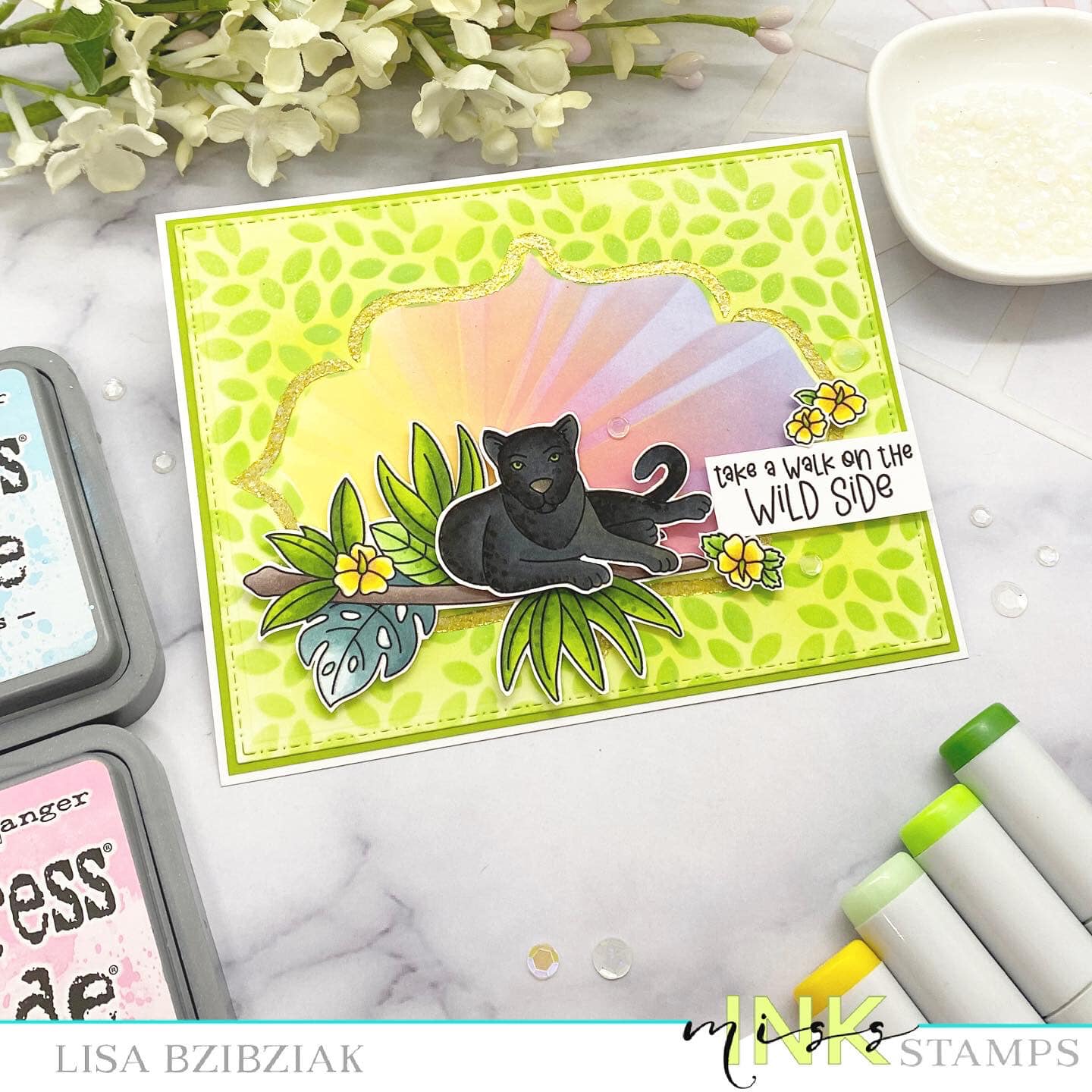 This set is a great addition to your cardmaking. It lets you ink blend a background and add a frame with ink, glitter or paste to help it pop. It includes the stencil, mask and frame with positioning guides.
