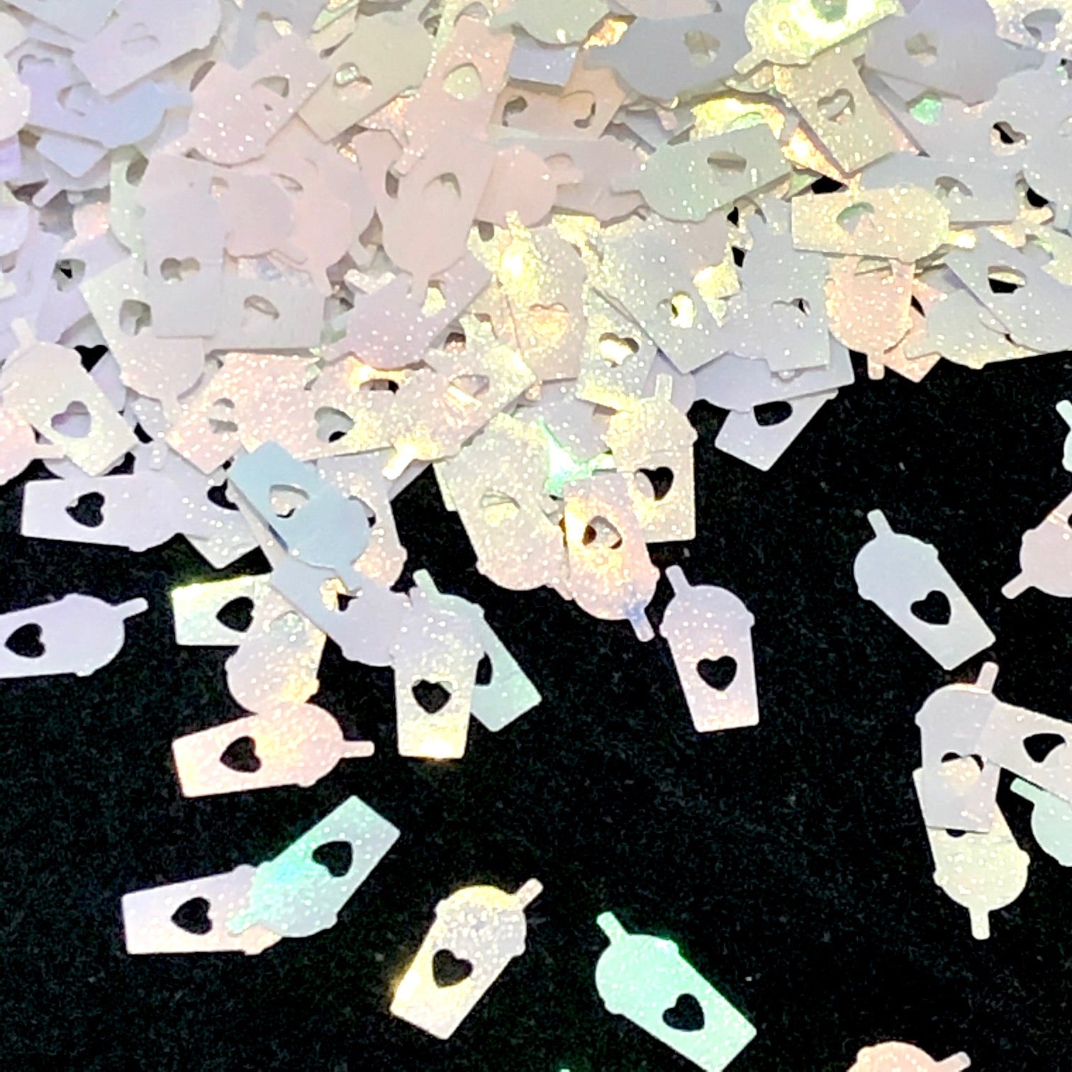 These white iridescent sequins work for lattes, frappes and milkshakes in your shaker cards or glued on your projects. Each bag contains approximately 3 teaspoons.