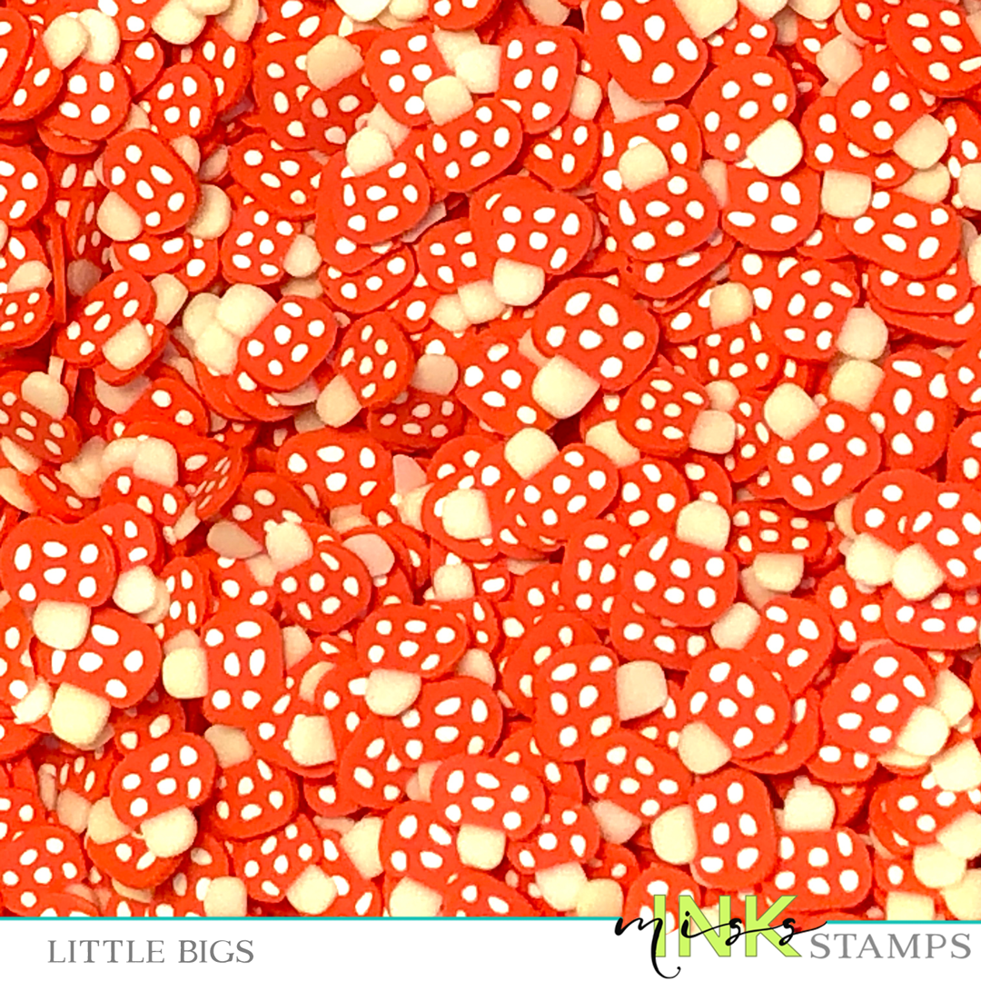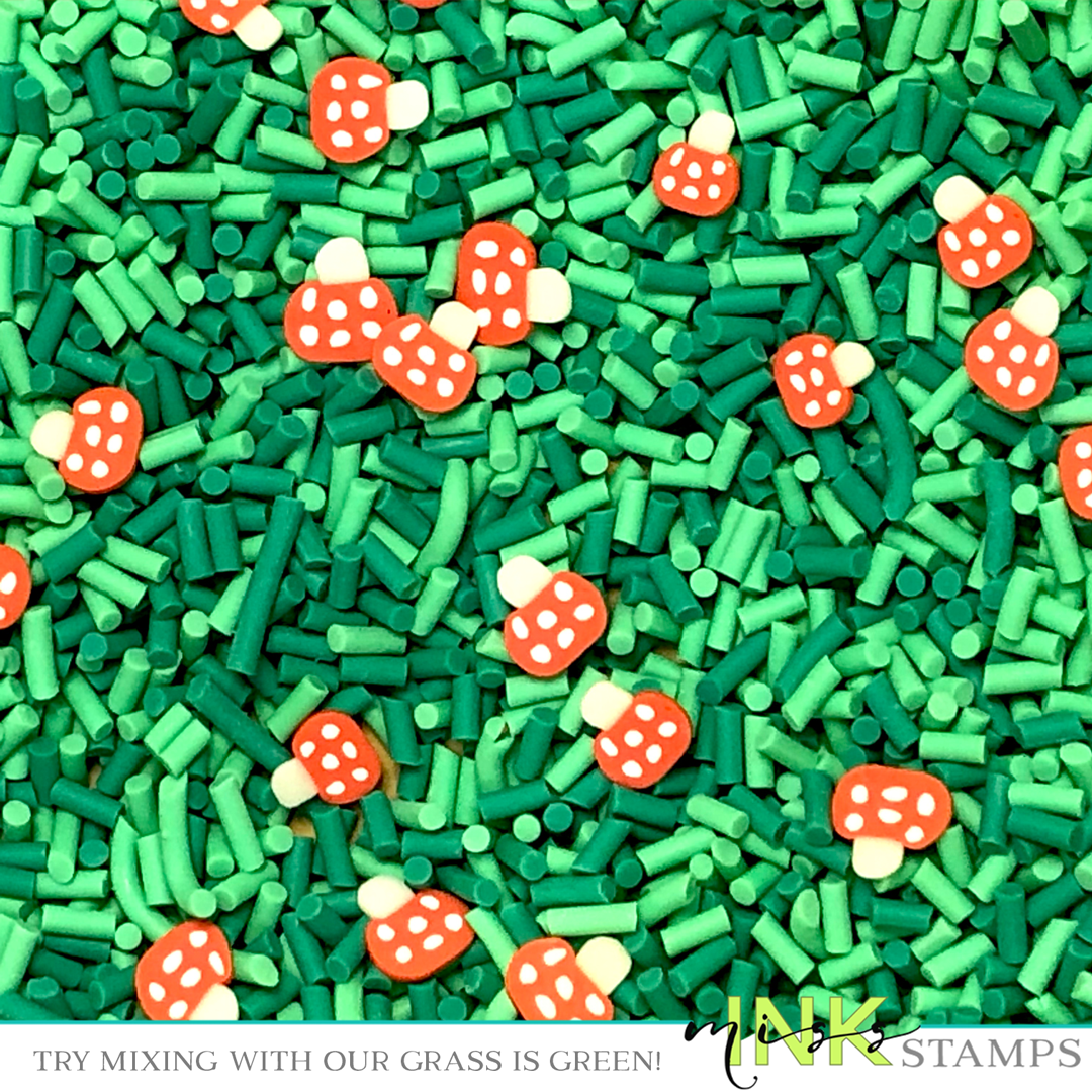 One side makes you little, one side makes you big! These little mushrooms are part of our Alice Collection. They're great mixed in with our Grass is Green sprinkles or to compliment woodland, gnome or fairy cards.