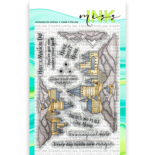 This 4x6 inch stamp set includes a large, focal point castle, a smaller castle for horizon lines and backgrounds, and a small set of mountains.