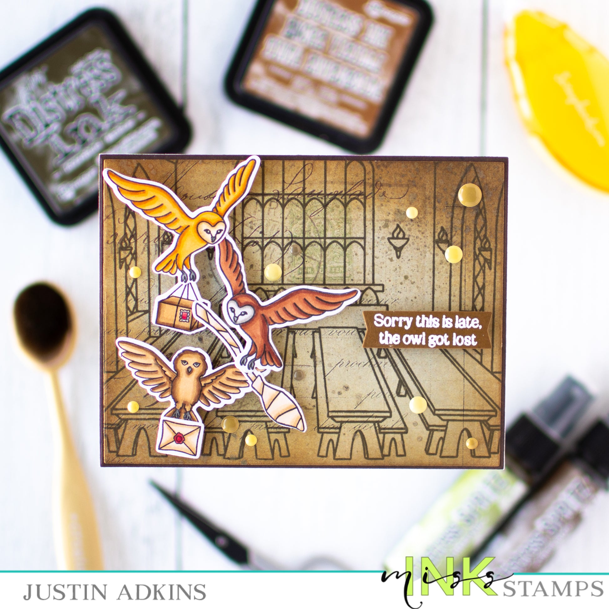 This 4x8 inch stamp set includes a variety of owls, envelopes and packages, plus a window (or nook) and sentiments.