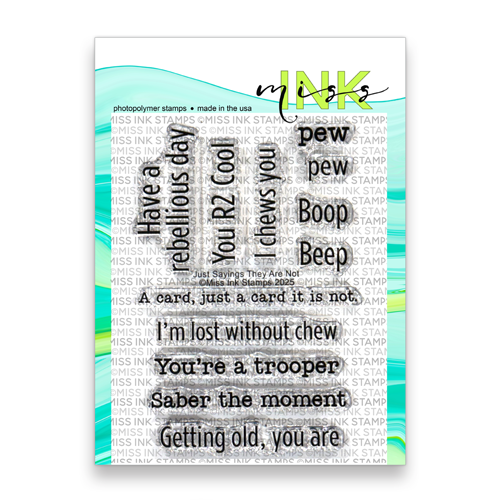 This set of sayings is made to go with our Beep Boop Bot layering stencil and Star Fighters mini-dies, but is perfect for anyone feeling rebellious. This is a 3x4: inch clear stamp set.